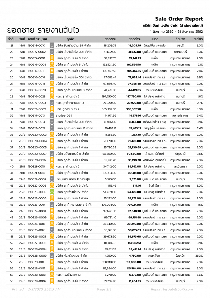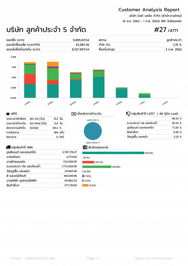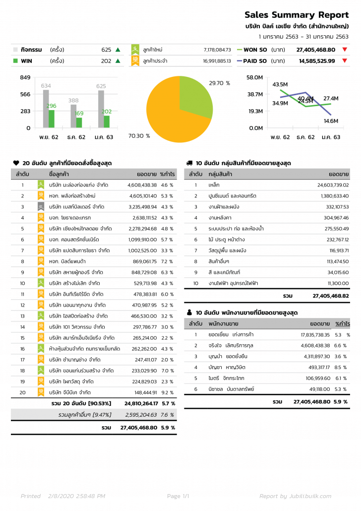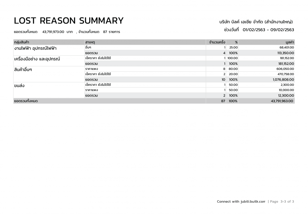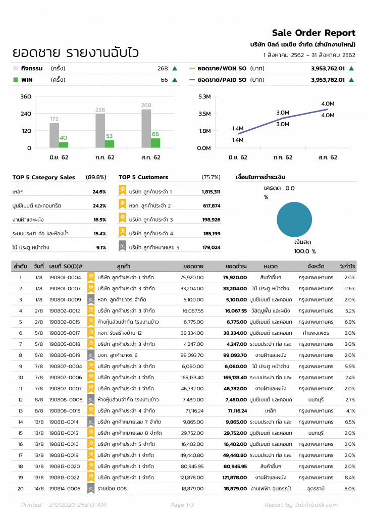 ตัวอย่างรายงานที่มีอยู่ใน JUBILI by BUILK