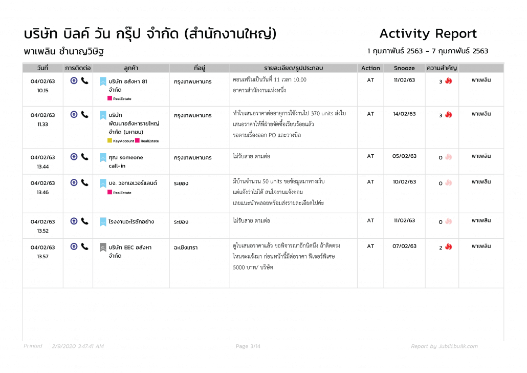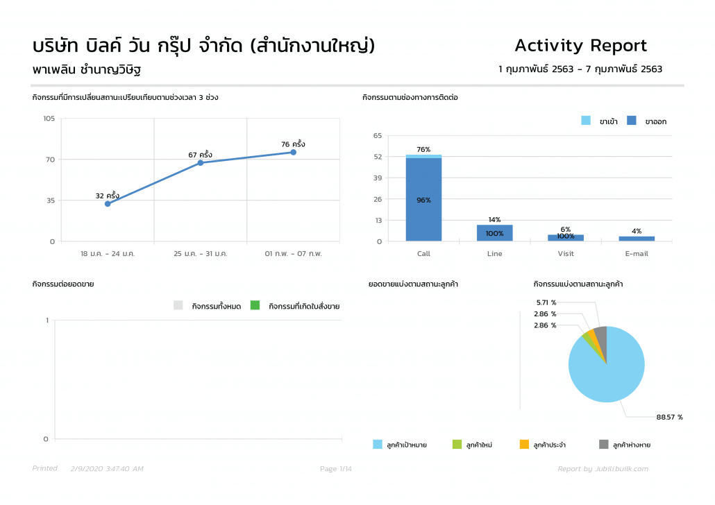 อย่างที่ JUBILI by BUILK ได้แนะนำกันไปก่อนหน้านี้กับการให้พี่ๆทีมขายและผู้บริหารปรับตัวนำระบบ CRM เข้าไปช่วยให้การทำรายงานการขายของพี่ๆ สะดวก ง่าย. และรวดเร็วขึ้น กับบทความเบื่อไหมที่ทำรายงานการขายส่งหัวหน้าแบบเดิมๆ ให้ระบบ CRM เข้ามาช่วยเร็วกว่าเยอะ! และเข้าสู่เดือน กุมภาพันธ์ JUBILI by BUILK ได้มีการอัพเดทรายงานตัวใหม่เข้ามาให้ใช้กันแล้ว