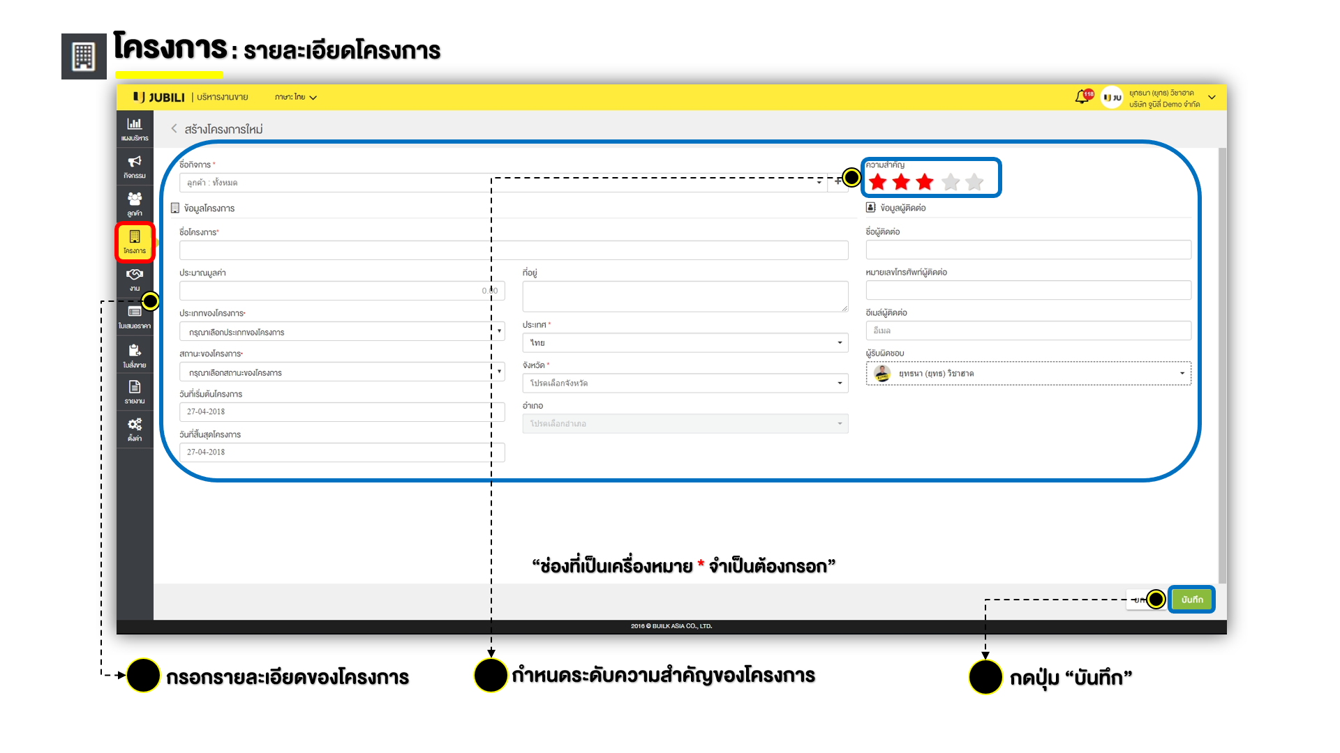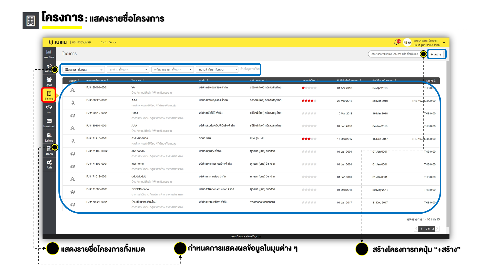 [สอนการใช้งาน] หน้าโครงการ - JUBILI BY BUILK โปรแกรม CRM บริหารทีมขาย - JUBILI ระบบ CRM บริหารทีมขายและความสัมพันธ์ลูกค้าสำหรับธุรกิจ B2B