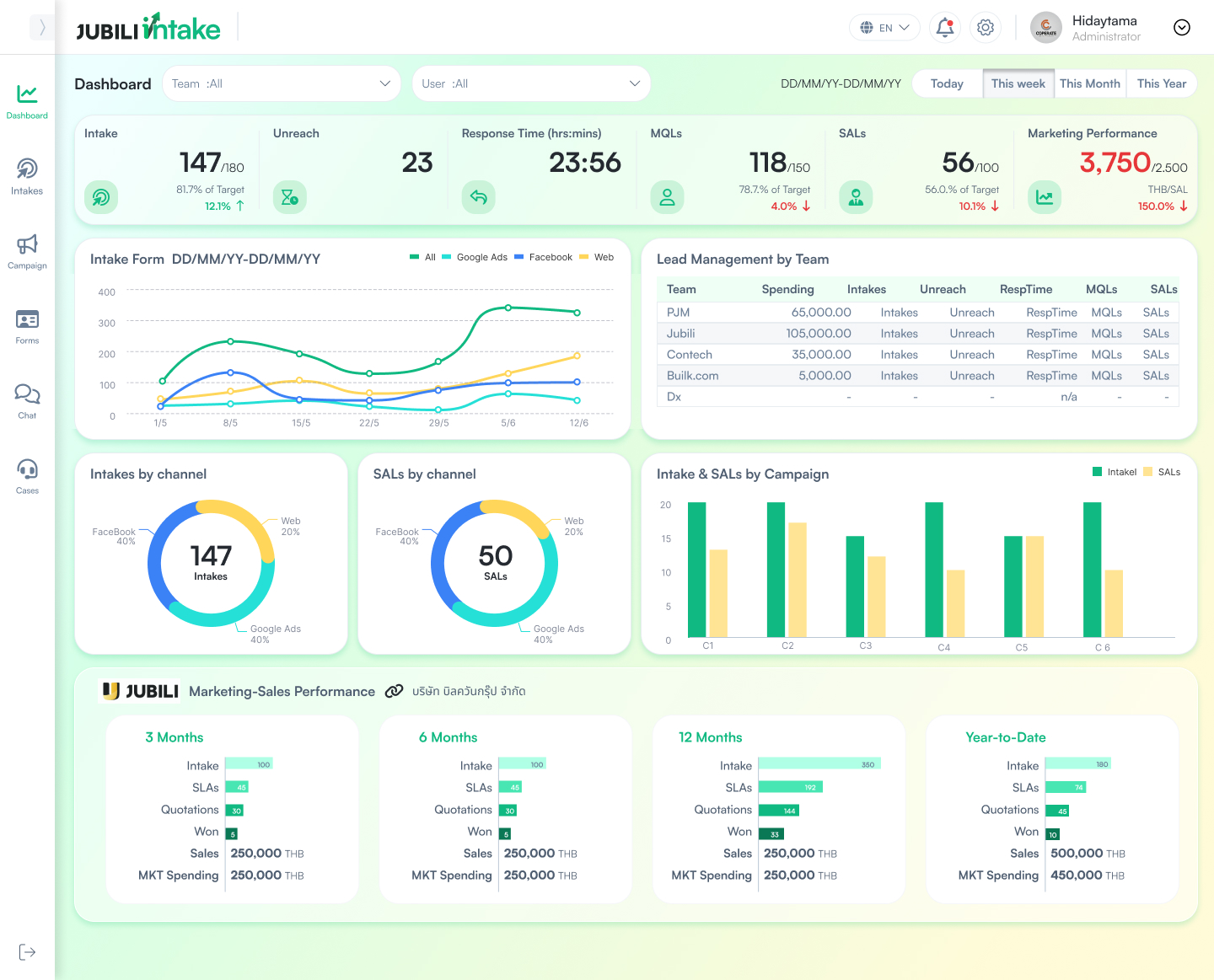 ให้ JUBILI Intake เป็นศูนย์กลางข้อมูล Lead ที่เชื่อมทีมการตลาดและฝ่ายขายเข้าด้วยกันอย่างแท้จริง