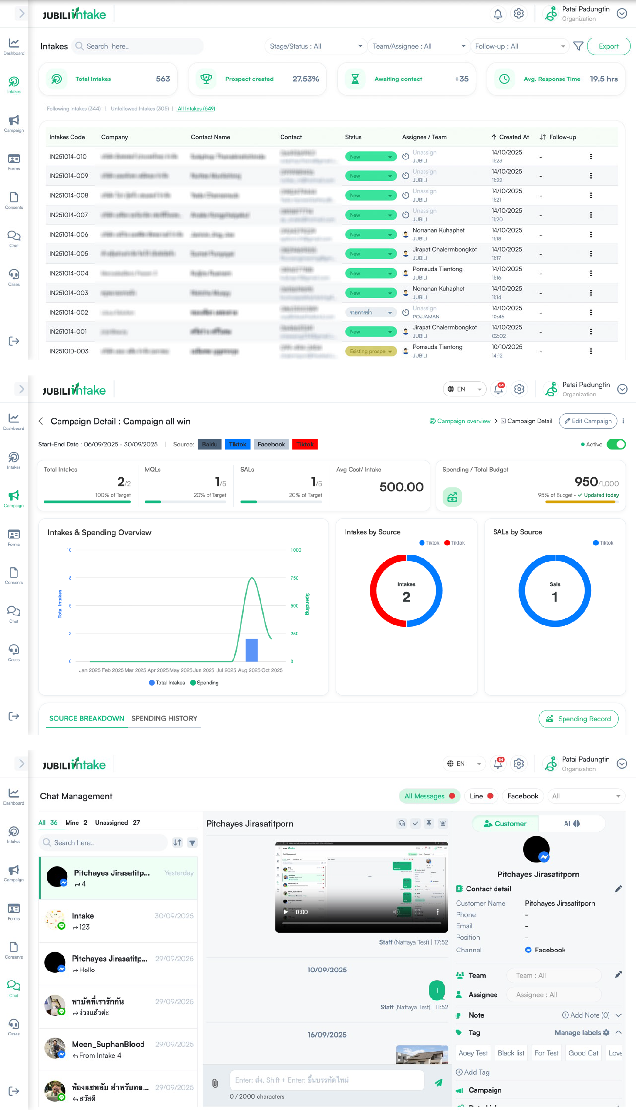 JUBILI Intake ยังมีฟีเจอร์ Chat Aggregation ที่รวมการสนทนาจากหลายช่องทาง