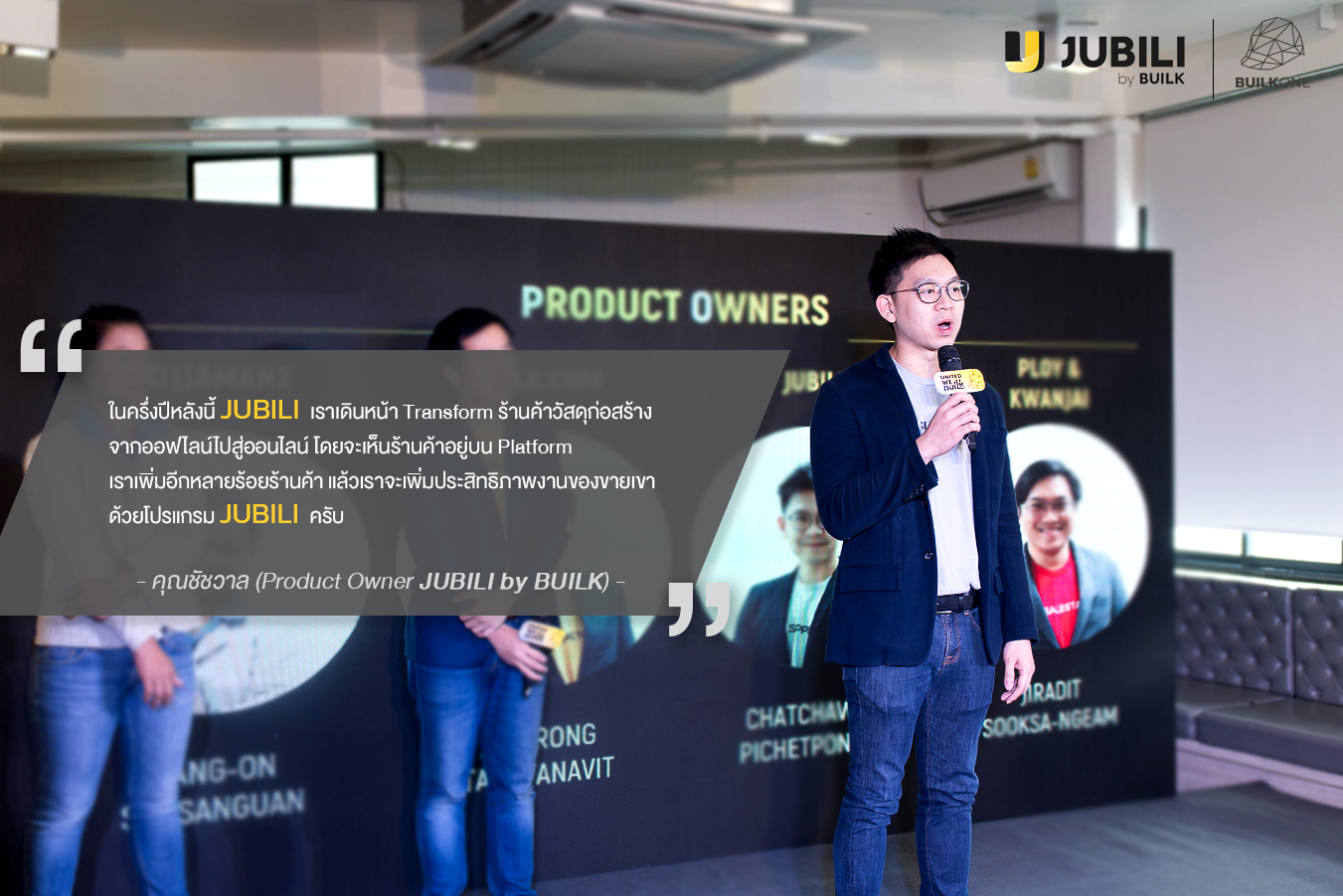 คุณชัชวาล พิเชฐพงศา (Product Owner JUBILI by BUILK) กล่าวว่า “ในครึ่งปีหลังนี้ JUBILI เราเดินหน้า Transform ร้านค้าวัสดุก่อสร้างจากออฟไลน์ไปสู่ออนไลน์ โดยจะเห็นร้านค้าอยู่บน platform เราเพิ่มอีกหลายร้อยร้านค้า แล้วเราจะเพิ่มประสิทธิภาพงานขายเขาด้วยโปรแกรม JUBILI”