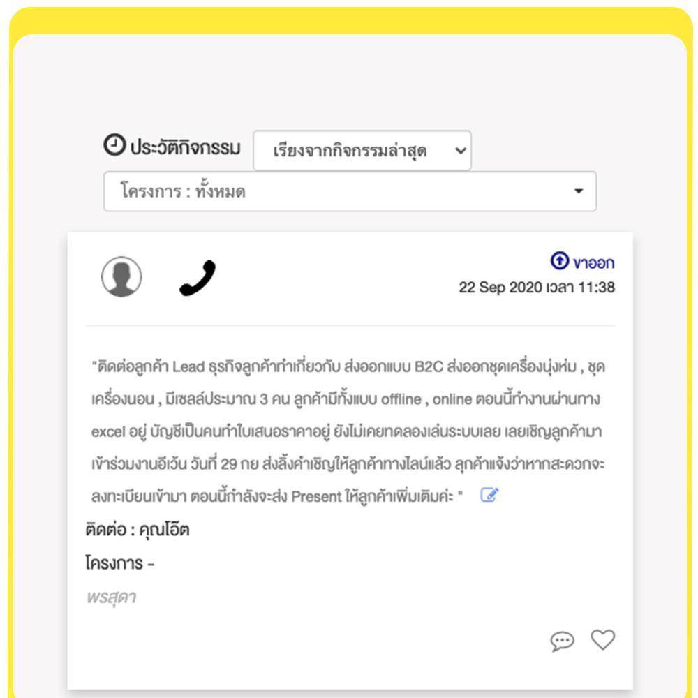Jubili CRM ช่วยบันทึกผลลัพธ์จากแคมเปญต่าง ๆ อย่างเป็นระบบ ทำให้นักการตลาดสามารถวิเคราะห์ว่าแคมเปญไหนเวิร์ก หรือควรปรับปรุงจุดใด เพื่อพัฒนาในรอบต่อไป
